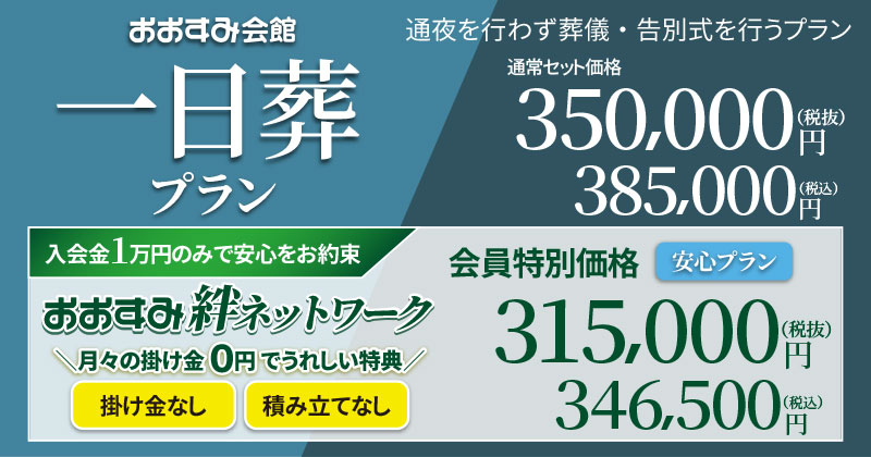 おおすみ会館の一日葬プランは通夜を行わず葬儀・告別式を一日で行う葬儀形式です。